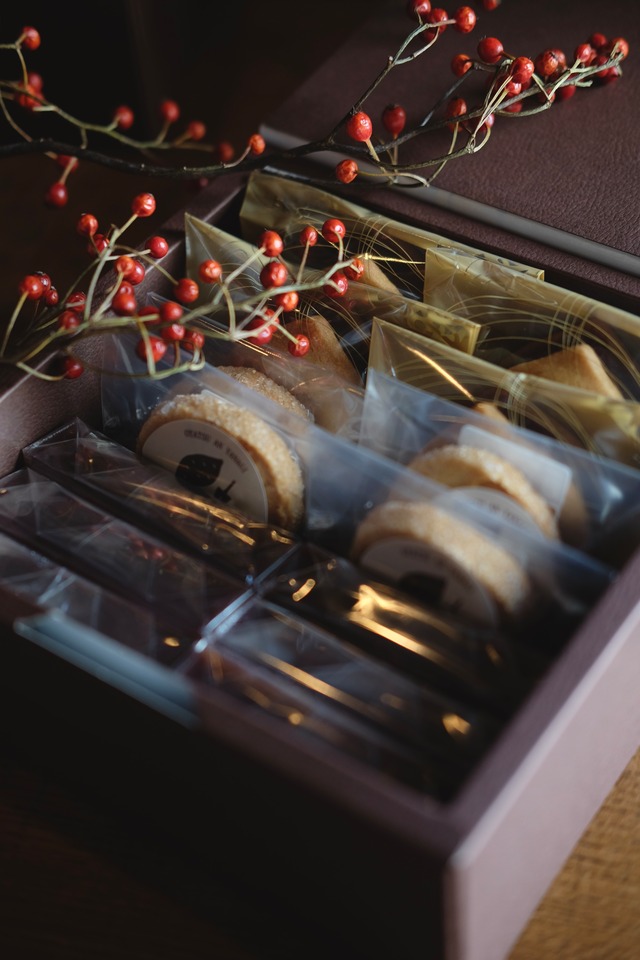 【クリスマスギフトバッグ】 あんやなぎの人気焼き菓子を、クリスマス限定のギフトバッグに詰め込みました。 見た目の可愛らしさはもちろん、どなたに贈っても喜んでいただける内容と価格にこだわった、ちょっとした贈り物にぴったりのセットです。 セット内容 •クリスマスモチーフのバタークッキー 2枚 (サンタ・ツリー・スノーマンなど、クリスマス限定の型で焼き上げています) •芋けんぴ(プレーン) •芋けんぴ(ショコラ) •おさつチップス ※計5点入り サクッと香ばしいクッキーと、素材の甘みを生かした芋菓子の組み合わせは、年齢や好みを問わずお楽しみいただけます。 焼き菓子のため日持ちも比較的長く、手土産やプチギフトとしても安心してお選びいただけます。 価格 1,260円(税込) ご購入について ・数量限定での販売となります ・オンラインショップ(BASE)にてお求めいただけます ・在庫状況により、予告なく販売終了となる場合がございます 今年一年の感謝の気持ちを込めて。 大切な方へのクリスマスギフトに、あんやなぎの焼き菓子をぜひご利用ください。