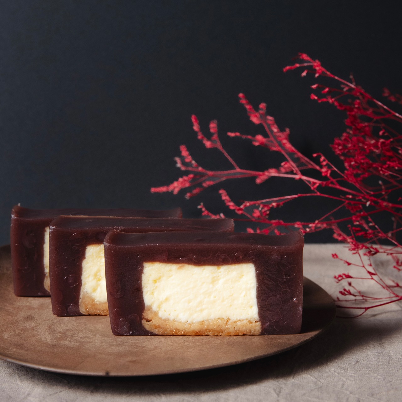 上品な甘さの羊羹に、滑らかなで濃厚なチーズケーキ、塩味のきいたクッキータルトの3層が絶妙なバランスで合わさる、唯一無二な新感覚大人スイーツです。