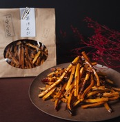 細くてカリカリとした、芋けんぴに、チョコレートをコーティングし、アクセントに岩塩を散らした、あんやなぎ芋けんぴシリーズの人気No.1商品です。